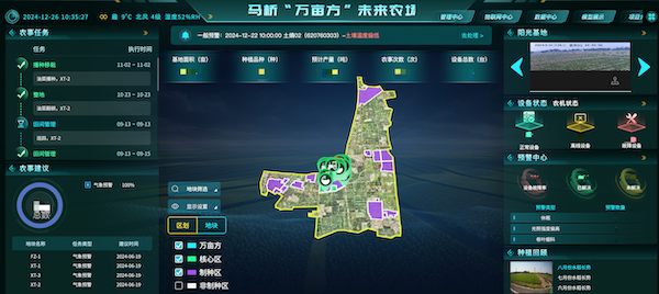 ? ? ? ?由浙江托普云農(nóng)科技股份有限公司(股票簡稱:托普云農(nóng),股票代碼:301556)提供技術(shù)支撐的“萬畝方智慧大腦”是實(shí)現(xiàn)未來農(nóng)場管理的核心。農(nóng)事服務(wù)中心的大屏上,“智慧大腦”正實(shí)時(shí)監(jiān)測著田間的作物長勢和病蟲害情況,并為農(nóng)事生產(chǎn)提供著氣象預(yù)警、遙感監(jiān)控查看、農(nóng)事任務(wù)下發(fā)等服務(wù),展現(xiàn)出滿滿的“科技感”。