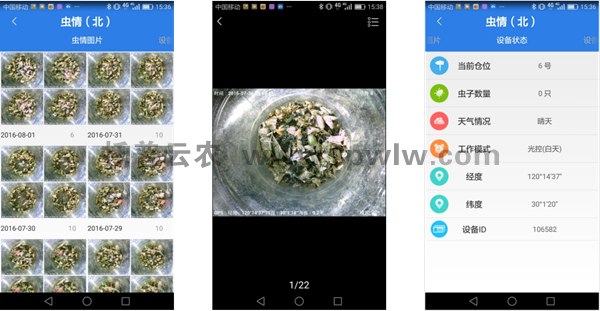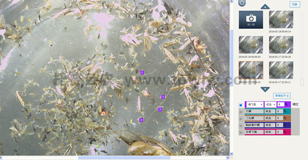 通過遠(yuǎn)程可拍照式蟲情測(cè)報(bào)燈采集到的蟲情照片,可設(shè)置拍照時(shí)間定時(shí)上傳,也可隨時(shí)遠(yuǎn)程拍照,即拍即看。高清照片清晰查看蟲情狀況,更有蟲情識(shí)別軟件自動(dòng)識(shí)別稻飛虱、二化螟等水稻類蟲害,自動(dòng)計(jì)數(shù)。