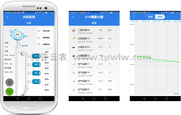 手機(jī)端可更方便的實(shí)現(xiàn)遠(yuǎn)程監(jiān)管與管控??蓪?shí)現(xiàn)園區(qū)內(nèi)各個(gè)監(jiān)測(cè)點(diǎn)數(shù)據(jù)查看查詢,曲線列表直觀呈現(xiàn);水肥設(shè)備、風(fēng)機(jī)、遮陽、補(bǔ)光等遠(yuǎn)程控制;也可查看蟲情圖片,了解園區(qū)蟲情情況等軟件監(jiān)管平臺(tái)所有功能,真正實(shí)現(xiàn)多終端管理,優(yōu)化管理方式。