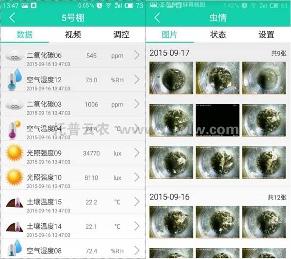 ?????? 其蔬菜基地接入空氣溫度、空氣濕度、土壤溫度、土壤水分、光照、CO2、葉面溫度、莖稈微變化、溫室小管家等傳感設(shè)備,精確采集蔬菜大棚的環(huán)境信息和植物生理數(shù)據(jù),采集數(shù)據(jù)可上傳至智慧云平臺,通過網(wǎng)頁設(shè)置傳感器上下限數(shù)值,控制風(fēng)機(jī)、內(nèi)外遮陽、水肥等設(shè)備,保證蔬菜最佳生長環(huán)境。大田、玉米基地、棉花基地配有氣象站、蟲情測報燈、植物養(yǎng)分測定儀、視頻監(jiān)控等設(shè)備,綜合監(jiān)測基地蟲情、墑情、苗情、災(zāi)情信息。數(shù)據(jù)自動采集、遠(yuǎn)程查看,使農(nóng)事操作者從繁瑣、繁重的人工管理作業(yè)中解放出來,坐在電腦前,即可通過網(wǎng)頁或手機(jī)APP輕松掌握各基地情況。