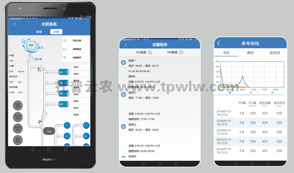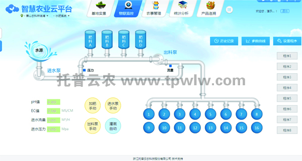 玉米適宜的土壤pH為5~8,以PH6.5~7.0最適。耐鹽堿能力差,特別是氯離子對(duì)玉米危害大。而通過(guò)施肥機(jī)精確的參數(shù)設(shè)置,可嚴(yán)格把控肥液的濃度以及PH值,為玉米提供最適宜的生長(zhǎng)環(huán)境,同時(shí)用戶(hù)也可通過(guò)網(wǎng)頁(yè)或手機(jī)APP遠(yuǎn)程查看水肥流量統(tǒng)計(jì)數(shù)據(jù)、園區(qū)視頻信息、控制田間電磁閥、進(jìn)行在線(xiàn)專(zhuān)家咨詢(xún),實(shí)現(xiàn)遠(yuǎn)程智能化管理。