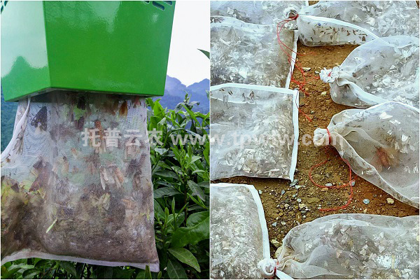 圖為托普云農(nóng)風(fēng)吸式茶園殺蟲燈有效捕殺到的茶園害蟲