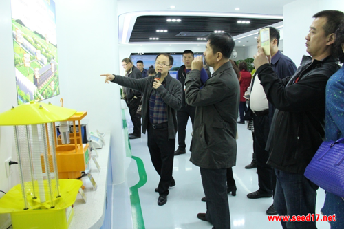 圖為:考察團(tuán)參觀托普云農(nóng)總部展廳
