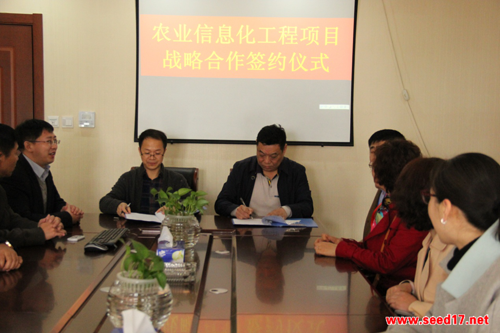 圖為:雙方簽署農(nóng)業(yè)信息化工程項(xiàng)目戰(zhàn)略合作協(xié)議