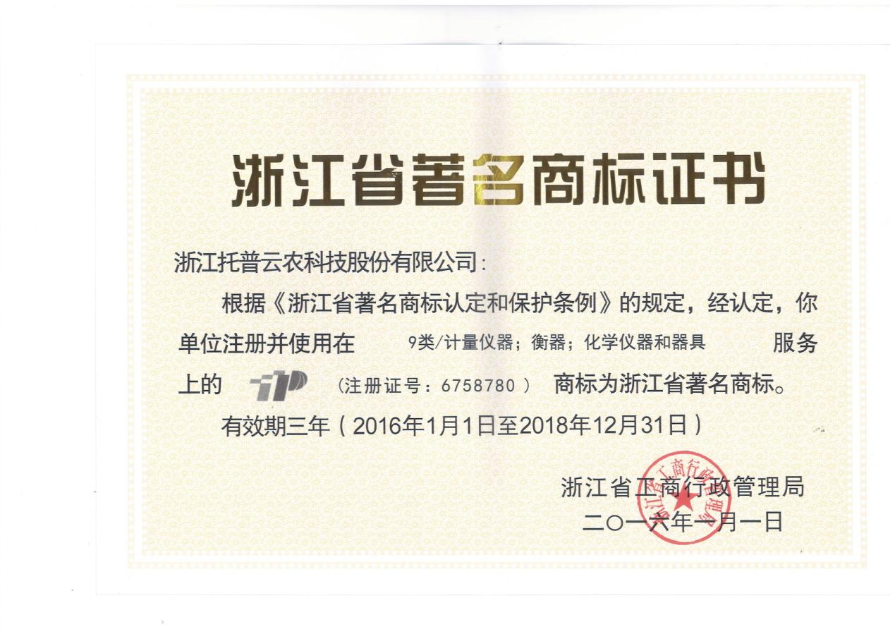 - 托普商標(biāo)榮獲浙江省著名商標(biāo)發(fā)表日期:2016-05-10 來(lái)源:托普云農(nóng) 瀏覽次數(shù):3915次