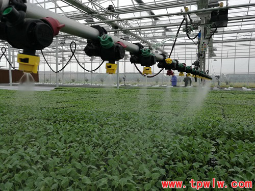 通過托普云農(nóng)物聯(lián)網(wǎng)控制的自走式噴灌機(jī)在工作中