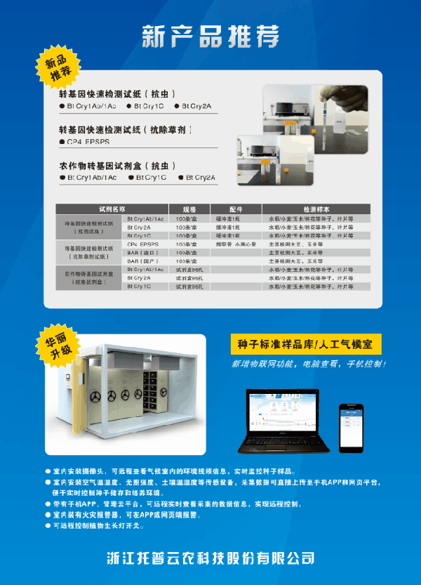 此次展會,浙江托普云農(nóng)科技股份有限公司也受邀出席,并且?guī)砹斯咀钚碌漠a(chǎn)品,如果您對轉(zhuǎn)基因快速測試、種子標簽二維碼追溯、人工氣候室及其他種子檢驗類儀器感興趣,不妨到展位參觀一下。
