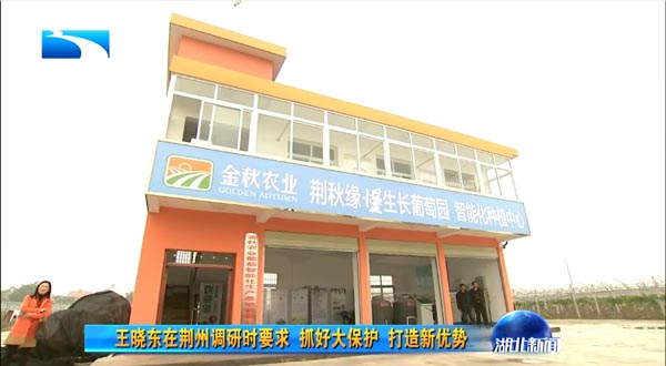 湖北省委副書記、代省長王曉東在荊州市市委書記李新華、市長楊智等領(lǐng)導(dǎo)陪同下蒞臨金秋農(nóng)業(yè)智能化葡萄示范基地調(diào)研現(xiàn)代農(nóng)業(yè)發(fā)展情況。饒有興趣的參觀了"智能化中心"水肥一體化設(shè)施,了解托普云農(nóng)水肥一體化的精準(zhǔn)生產(chǎn)過程。