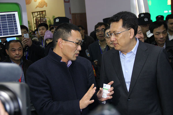 本屆展會“互聯(lián)網(wǎng)+”成托普云農(nóng)展區(qū)亮點,吸引了省領導的目光及浙江衛(wèi)視的關注。省委副書記袁家軍、省人大常委會副主任程渭山、副省長孫景淼等領導在工作人員的陪同下參觀了托普云農(nóng)展區(qū)。托普云農(nóng)董事長陳渝陽向袁家軍副書記一行介紹了公司在物聯(lián)網(wǎng)方面取得的階段性進展和研發(fā)成果,結合現(xiàn)場展示的植保信息化系統(tǒng),向袁家軍副書記一行演示了智能農(nóng)業(yè)儀器是如何“+”互聯(lián)網(wǎng)技術在全天候無人值守的情況下實現(xiàn)“四情”監(jiān)測的。直接展現(xiàn)了互聯(lián)網(wǎng)產(chǎn)業(yè)與農(nóng)業(yè)產(chǎn)業(yè)融合發(fā)展促進傳統(tǒng)農(nóng)業(yè)轉型升級的發(fā)展現(xiàn)狀。