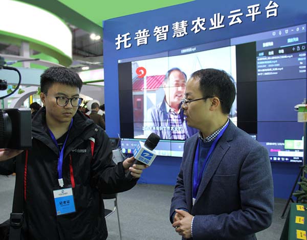 這一番“互聯(lián)網(wǎng)+農(nóng)業(yè)”的介紹也獲得了浙江衛(wèi)視的關注。記者來到托普云農(nóng)展位,公司副總朱旭華向記者介紹了公司獲得的科研成就及展出的智能化軟硬件系統(tǒng)。主要有:托普云農(nóng)農(nóng)業(yè)“四情”監(jiān)控系統(tǒng)、設施農(nóng)業(yè)監(jiān)控系統(tǒng)、水肥一體化監(jiān)控系統(tǒng)、智慧農(nóng)業(yè)云平臺等農(nóng)業(yè)物聯(lián)網(wǎng)系統(tǒng)、平臺及土壤墑情監(jiān)控系統(tǒng)硬件、農(nóng)藥殘留速測儀、相關智能硬件設備(如遠程傳輸智能蟲情測報燈、溫室通、大田六合一無線傳感器、植物本體傳感器)。