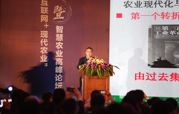 大家早上好。今天的高峰論壇很有創(chuàng)新,大家發(fā)現(xiàn)了沒(méi)有,互聯(lián)網(wǎng)+現(xiàn)代農(nóng)業(yè),立足當(dāng)下,后邊還跟著智慧農(nóng)業(yè),是發(fā)展目標(biāo),跟中央文件,直接打在了現(xiàn)代農(nóng)業(yè)后面,+放在了上面很有創(chuàng)新。