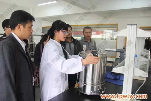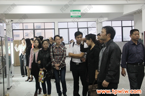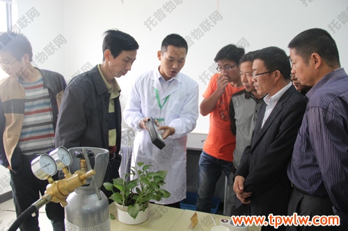 圖為:參會嘉賓在樣品室聽取托普農(nóng)業(yè)物聯(lián)網(wǎng)介紹,并表現(xiàn)出了對該系統(tǒng)的濃厚興趣