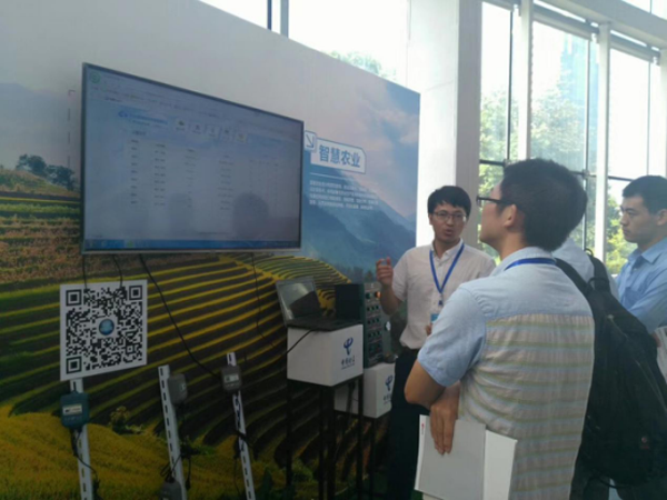 托普云農(nóng)工作人員在現(xiàn)場為參觀人員講解智慧農(nóng)業(yè)整體解決方案的應(yīng)用