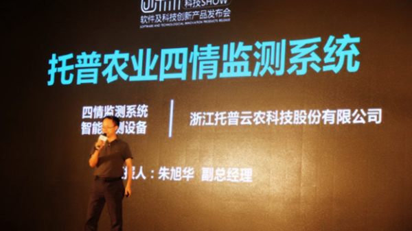托普云農副總經理朱旭華在“創(chuàng)未來”軟件及科技創(chuàng)新產品發(fā)布會現場
