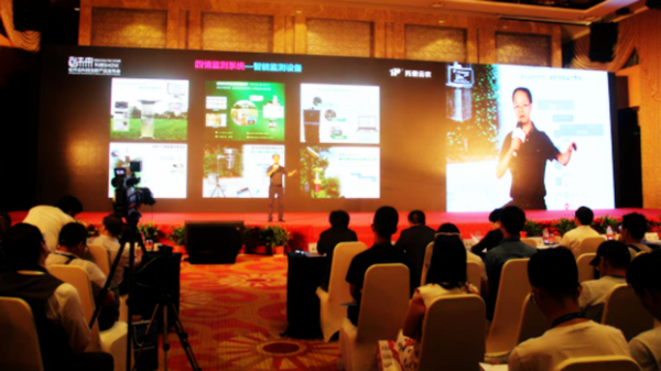托普云農副總經理朱旭華在“創(chuàng)未來”軟件及科技創(chuàng)新產品發(fā)布會上介紹農業(yè)四情監(jiān)測系統(tǒng)