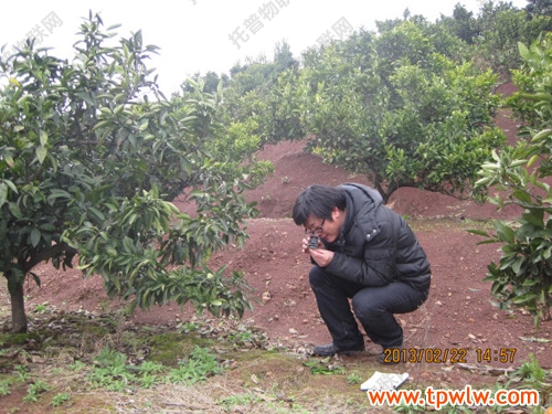 圖為:2013年2月22日,縣植保技術(shù)人員在淳安縣界首鄉(xiāng)柑橘觀測(cè)區(qū)調(diào)查病蟲害發(fā)生情況