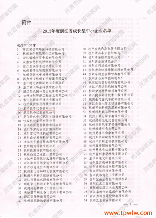 圖為:2013年度浙江省成長(zhǎng)型中小企業(yè)名單(托普儀器在第十五位紅線處)