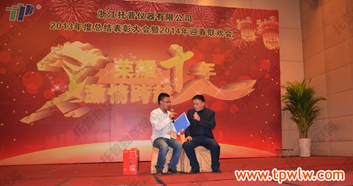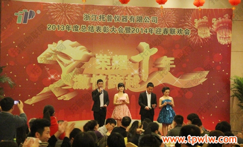 - “榮耀十年、激情跨越”之托普儀器2013年年終晚會(huì)發(fā)表日期:2014-01-27 來源:托普云農(nóng) 瀏覽次數(shù):3841次飛雪送蛇歸,駿馬迎春來。2014年1月24日六點(diǎn)整,在一片歡樂祥和的氣氛里,“榮耀十年、激情跨越”之托普儀器2013年年終晚會(huì)緩緩拉開序幕。托普儀器260余人的大家庭齊聚一堂,慶祝托普十年華誕,慶祝一年的工作成果,慶祝除舊迎新。晚會(huì)伊始,托普儀器陳渝陽總經(jīng)理上臺(tái)為本次晚會(huì)致開幕詞,為即將到來的馬年向所有托普家人致以新春的問候。