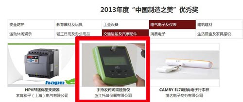 托普儀器產(chǎn)品“手持農(nóng)藥殘留速測儀”也參加了此次全國性工業(yè)設計大賽的角逐,并憑借外觀設計優(yōu)勢榮獲了2013年度“中國制造之美”優(yōu)秀獎,贏得了主辦方--中國制造網(wǎng)面向國內(nèi)外采購商的全渠道商業(yè)推廣和與數(shù)百萬中國制造網(wǎng)會員企業(yè)對話交流設計心得的機會。