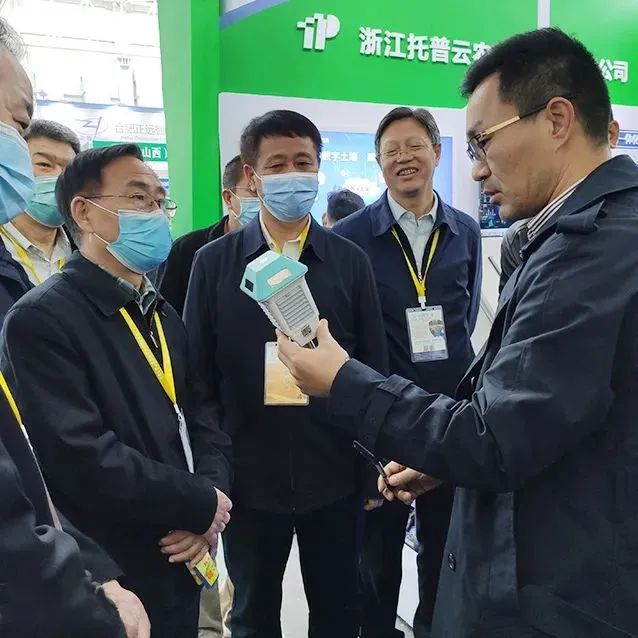 農(nóng)業(yè)農(nóng)村部種植業(yè)管理司潘文博司長(zhǎng)、全國(guó)農(nóng)技中心魏?jiǎn)⑽闹魅?、中?guó)農(nóng)業(yè)技術(shù)推廣協(xié)會(huì)陳生斗會(huì)長(zhǎng)一行蒞臨托普云農(nóng)展位