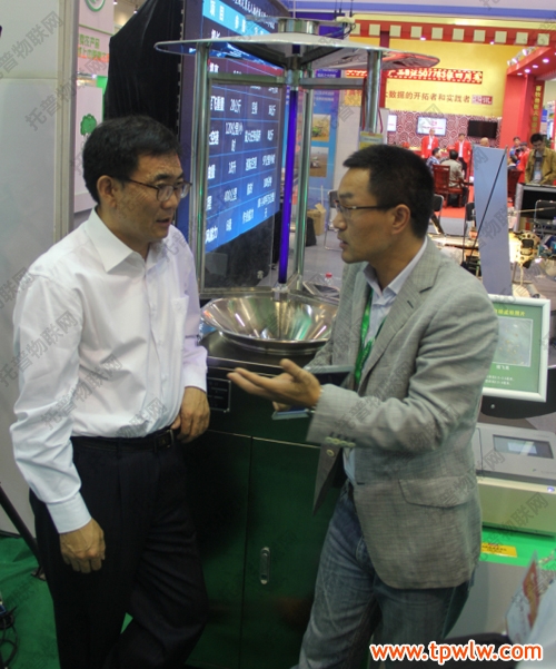 農(nóng)交會(huì)期間,張合成司長一行親臨托普儀器展臺(tái)考察指導(dǎo)工作,托普儀器陳渝陽總經(jīng)理詳細(xì)介紹了此次展出的農(nóng)業(yè)物聯(lián)網(wǎng)“四大系統(tǒng)”平臺(tái):設(shè)施農(nóng)業(yè)自動(dòng)監(jiān)測(cè)與控制平臺(tái)、農(nóng)作物病蟲害監(jiān)測(cè)預(yù)警信息平臺(tái)、土壤墑情監(jiān)測(cè)與預(yù)警信息平臺(tái)、食品安全監(jiān)控與追溯信息系統(tǒng)。張合成司長表示,信息化技術(shù)是現(xiàn)代農(nóng)業(yè)的重要發(fā)展方向,應(yīng)加強(qiáng)研究力度,提高整體應(yīng)用水平。