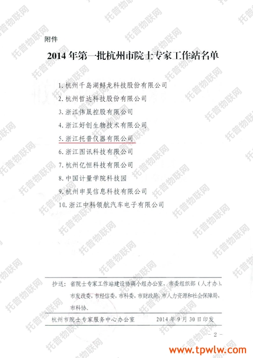 日前,《關(guān)于認(rèn)定2014年第一批杭州市院士專家工作站的通知》頒發(fā),認(rèn)定托普儀器在內(nèi)的10家單位院士專家工作站為2014年第一批杭州市院士專家工作站。