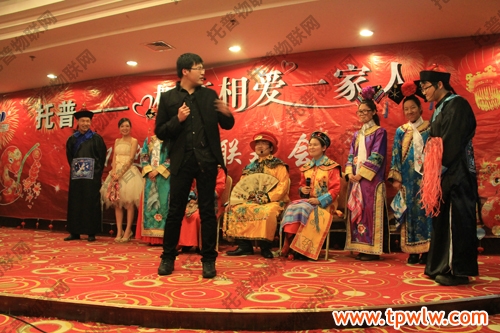 龍飛蛇舞,燕語鶯歌,“實力唱將”張銀玉的一首《日不落》,為晚會拉開了序幕。歌曲舞蹈精彩繽紛,小品口技驚喜不斷!行政人事部自編自導自演的《新年三句半》,句句原創(chuàng),貼切地描述了公司2012年里取得的成績和蓬勃發(fā)展的風貌;性感火辣的舞蹈《夜上?!泛汀豆照任琛芬痍囮嚉g呼,引起一陣小高潮;口技表演B-BOX一鳴驚人;外貿部兩位美女的英文歌令人耳目一新,兩位帥哥的《北京北京》則向我們訴說他們曾經北漂的經歷?!锻衅詹块T秀》以部門走秀的方式,展示了托普14個部門各有分工又團結協作,贏得了陣陣熱烈的掌聲!隨著小品《甄嬛傳之除夕后宮聯歡》的上演,晚會迎來了新一輪的高潮,清裝、甄嬛體、古典舞、走秀、江南stlye,笑料層出不窮。當然,也少不了激動人心,也是最受歡迎的抽獎環(huán)節(jié)了。最后通過全體員工的評分,小品《甄嬛傳之除夕后宮聯歡》、舞蹈《夜上?!泛蛷堛y玉的獨唱《日不落》分別獲得了一、二、三等獎,公司領導現場為獲獎節(jié)目頒發(fā)獎金。