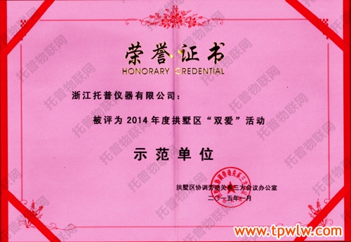 - 托普儀器被評選為拱墅區(qū)“雙愛”活動示范單位發(fā)表日期:2015-02-27 來源:托普云農(nóng) 瀏覽次數(shù):3793次