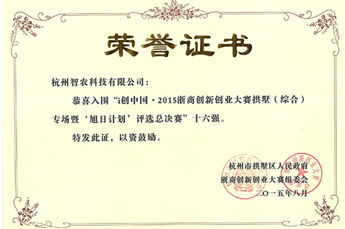 2015年8月5日,i創(chuàng)中國· 2015浙商創(chuàng)新創(chuàng)業(yè)大賽拱墅區(qū)專場暨“旭日計劃”評選總決賽(以下簡稱“浙商創(chuàng)新創(chuàng)業(yè)大賽”)如期舉行。杭州智農(nóng)科技有限公司參與總決賽,并成功躋身16強之列。