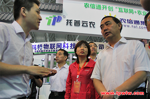 會議期間,安徽省農業(yè)委員會孫正東主任蒞臨托普云農農業(yè)物聯(lián)網展區(qū),并細致觀摩了托普云農所展出的大田“四情”監(jiān)控系統(tǒng)、設施農業(yè)監(jiān)控系統(tǒng)、土壤墑情監(jiān)控系統(tǒng)等多種農業(yè)物聯(lián)網綜合服務平臺,以及與之相關的多種儀器和智能硬件設備。在參觀過程之中,孫正東主任詳細詢問了大田“四情”監(jiān)控系統(tǒng)、遠程傳輸智能蟲情測報燈、植物本體傳感器、固定式無線農業(yè)氣象綜合監(jiān)測站等系統(tǒng)設備。陳曦經理為其一一進行介紹。