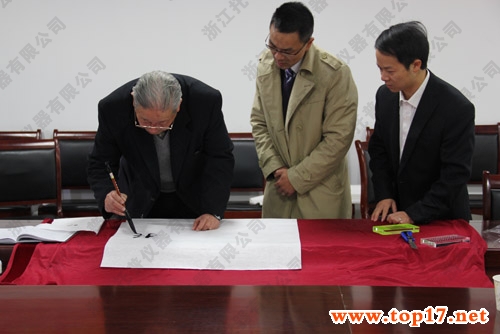 圖為:陳子元院士為托普題詞并與陳渝陽總經(jīng)理、朱旭華副總經(jīng)理合影留念隨后,陳子元院士在陳渝陽總經(jīng)理的陪同下出席了托普儀器全國經(jīng)銷商見面會并作寄語。會議上,陳院士首先肯定了托普陳渝陽總經(jīng)理個人的成就,他說到:陳渝陽畢業(yè)于浙江農(nóng)業(yè)大學(xué),并且通過自己不懈的努力,結(jié)合國家宏觀政策對農(nóng)業(yè)的大力支持,結(jié)合自己所學(xué)的專業(yè)知識,在大家的共同支持和幫助下,既開拓了自己的事業(yè)空間,更可貴的是通過他的努力與實踐,也在很大程度上豐富了我們原先薄弱的農(nóng)業(yè)儀器設(shè)備,要知道這也是解決“三農(nóng)”問題的有力措施,對推動農(nóng)業(yè)現(xiàn)代化具有明顯的助推作用。