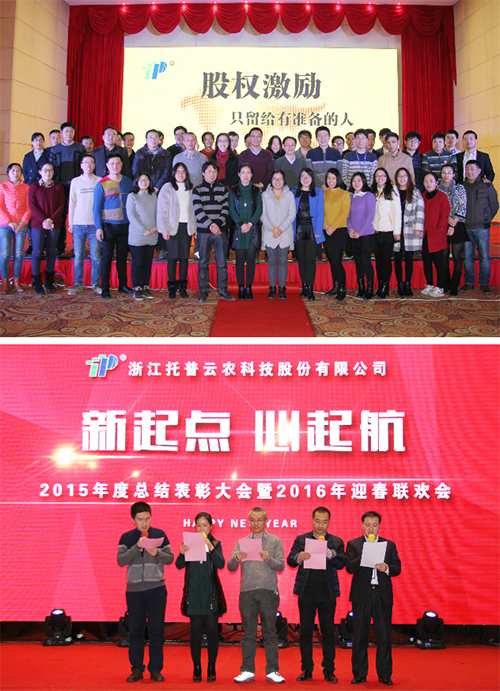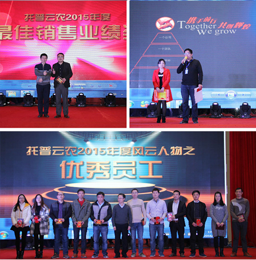 本屆年會由行政人事總監(jiān)主持,公司副總朱旭華先生向全體托普人做了公司2015年總結報告,并分析這一年成績和存在的不足。陳渝陽總經(jīng)理以中央一號文件為駐點,全面分析了中國現(xiàn)代農(nóng)業(yè)的發(fā)展趨勢,并對公司目前所處的宏觀環(huán)境進行了深入的分析,并公布公司2016年的戰(zhàn)略發(fā)展規(guī)劃。表示企業(yè)發(fā)展離不開優(yōu)秀人才,其發(fā)展成果也終將惠及廣大托普人,并重申了公司內(nèi)部優(yōu)秀人才的股權激勵機制,讓更多優(yōu)秀的事業(yè)合伙人能夠分享到公司的發(fā)展成果。期間公布了2015年度優(yōu)秀員工并對其表示感謝和祝賀!