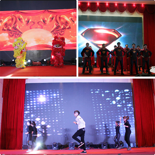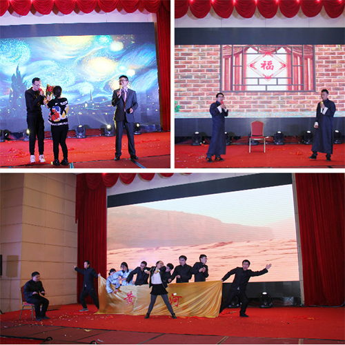 精彩紛呈的“新故事,新起點”2016新春年度盛典在四位支持人的深情開場中拉開序幕。熱情歡樂《金獅送?!奉I先開演,為大家送來了新年的祝福;勁舞《說愛就愛》,激情火爆,樂觀向上的精神風貌展現(xiàn)得淋漓盡致;研發(fā)團隊的舞臺劇《電影院那些事》演繹了公司研發(fā)人員豐富飽滿的內(nèi)心世界。一首《飄雪》,瞬間將我們就帶入了純情浪漫模式。古箏演奏,優(yōu)雅悠揚;激情昂揚的《保衛(wèi)黃河》將整個晚宴推向高潮;銷售部老男人們的《群魔亂舞》讓大家更是樂的開懷暢飲!期間的互動環(huán)節(jié)及歡樂大抽獎讓全場氛圍熱烈而又充滿期待,高潮迭起!