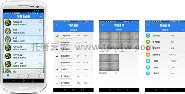 托普病蟲害監(jiān)測預(yù)警系統(tǒng)由蟲情信息自動采集分析系統(tǒng)、孢子信息自動捕捉培養(yǎng)系統(tǒng)、遠(yuǎn)程小氣候信息采集系統(tǒng)、病蟲害遠(yuǎn)程監(jiān)控設(shè)備、害蟲性誘智能測報系統(tǒng)等設(shè)備組成,可自動完成蟲情信息、病菌孢子、農(nóng)林氣象信息的圖像及數(shù)據(jù)采集,并自動上傳至云服務(wù)器,用戶通過網(wǎng)頁、手機(jī)即可聯(lián)合作物管理知識、作物圖庫、災(zāi)害指標(biāo)等模塊,對作物實時遠(yuǎn)程監(jiān)測與診斷,提供智能化、自動化管理決策,是農(nóng)業(yè)技術(shù)人員管理農(nóng)業(yè)生產(chǎn)的“千里眼”和“聽診器”。