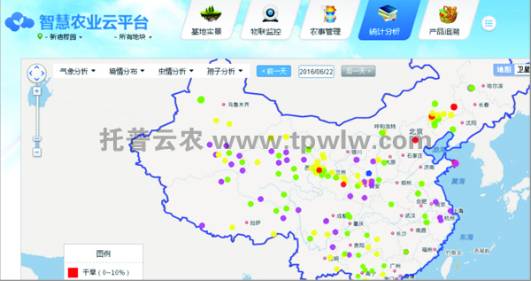 可查看監(jiān)測(cè)區(qū)域的墑情、病蟲(chóng)害、災(zāi)情、苗情、種植基地等信息,為政府或監(jiān)管部門(mén)進(jìn)行區(qū)域種植類(lèi)型、農(nóng)產(chǎn)品價(jià)格分析、產(chǎn)量預(yù)測(cè)、農(nóng)作物生長(zhǎng)模型建設(shè)等工作提供數(shù)據(jù)支撐。