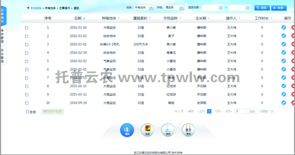 可對(duì)溫室的灌溉信息、施肥施藥、種植品種信息、農(nóng)作物生長(zhǎng)信息、作物采收等信息進(jìn)行管理,實(shí)現(xiàn)溫室信息數(shù)字化管理。