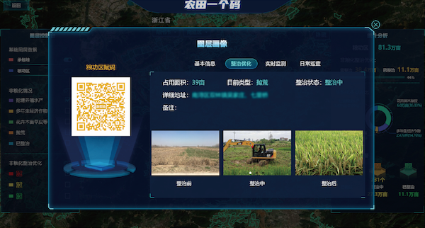 構(gòu)建“一田一碼”,對農(nóng)田地塊進行賦碼,以“農(nóng)田碼”貫穿規(guī)劃選址、竣工驗收、項目管護、農(nóng)田種植等全過程數(shù)據(jù),構(gòu)建“碼上監(jiān)管”"碼上服務(wù)”等業(yè)務(wù)場景,實現(xiàn)全周期串聯(lián),清晰掌提高標準農(nóng)田建設(shè)全空間、全要素、全過程信息,做到“事前事中可預(yù)警”“全程信息可追溯”。