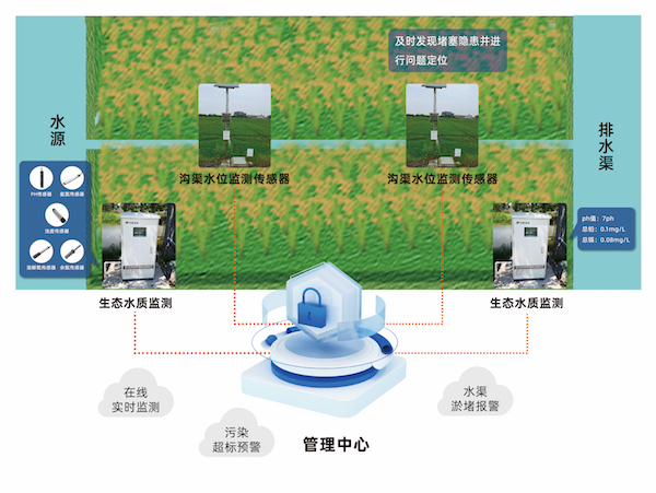 農(nóng)田水源與水渠監(jiān)測管理水是農(nóng)業(yè)生產(chǎn)的生命線,通過應(yīng)用物聯(lián)網(wǎng)水質(zhì)監(jiān)測系統(tǒng)、配備溝渠水位監(jiān)測系統(tǒng),實時監(jiān)測水質(zhì)PH值、溶解氧、氨氮等關(guān)鍵指標,監(jiān)測水渠水位變化,聯(lián)動物聯(lián)網(wǎng)平臺及時發(fā)布水質(zhì)污染超標、水渠淤堵等預(yù)警信息,減少因水資源污染和洪澇災(zāi)害對高標準農(nóng)田造成的經(jīng)濟損失。